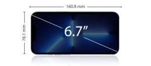 آیفون 13 پرومکس بزرگ ترین مدل در بین این خانواده محسوب می شود و دارای ابعادی معادل 160.8 در 78.1 در 7.7 میلی متر است همچنین در ساخت پنل جلویی و پشتی از شیشه استفاده شده و برای قاب آن شاهد بکارگیری فولاد ضد زنگ می باشیم که سبب شده تا بدنه از وزنی در حدود 240 گرم برخوردار باشد و حتی مقاومت بیشتری به آن بخشیده است. پنل پشتی و جلویی دستگاه، به گوریلا گلس مجهز شده است که در برابر هر گونه خط و خش مقاومت کافی دارد همچنین موفق به دریافت گواهی IP68 شده از این رو در برابر نفوذ ذرات آب تا عمق 6 متر و به مدت 30 دقیقه مقاوم است و با قرار گرفتن در معرض گرد و غبار نیز، دچار آسیب نمی شود. در زیر محافظ اولفوبیک یک صفحه نمایش با حاشیه های فوق ظریف و ناچ سلفی کوچک تعبیه شده که استحکام خوبی را به نمایشگر بخشیده است بنابراین توانسته در حدود 87.4 درصد کل بدنه را به خود اختصاص دهد و جلوه ی خاصی را از محصول به نمایش بگذارد. کمپانی اپل با افزودن یک سنسور به ماژول دوربین نسبت به مدل های دیگر این سری، تجربه ی متفاوتی از عکاسی را به ارمغان آورده است. این دستگاه دارای یک پورت لایتینگ است که علاوه بر تغذیه ی باتری امکان اتصال هندزفری را فراهم ساخته بنابراین توانسته نبود جک 3.5 میلی متری صدا را به خوبی توجیه کند. پنل پشتی به سبب بهره مندی از پوشش مات و ادغام با فریم براق و زیبا، طراحی بسیار چشم نوازی را به نمایش گذاشته که نگاه هر بیننده ای را به سوی خود جلب می کند به علاوه هیچ گونه لکه و اثر انگشت را نمی پذیرد از این رو به هنگام استفاده ی طولانی مدت ظاهر آن تغییر نمی کند.